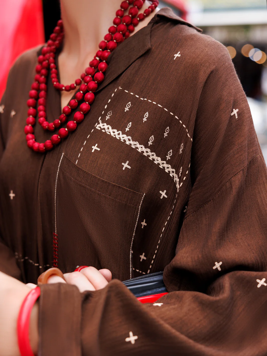 -70%Dark Brown Dobby Cotton Tunic - AL-LK-957—