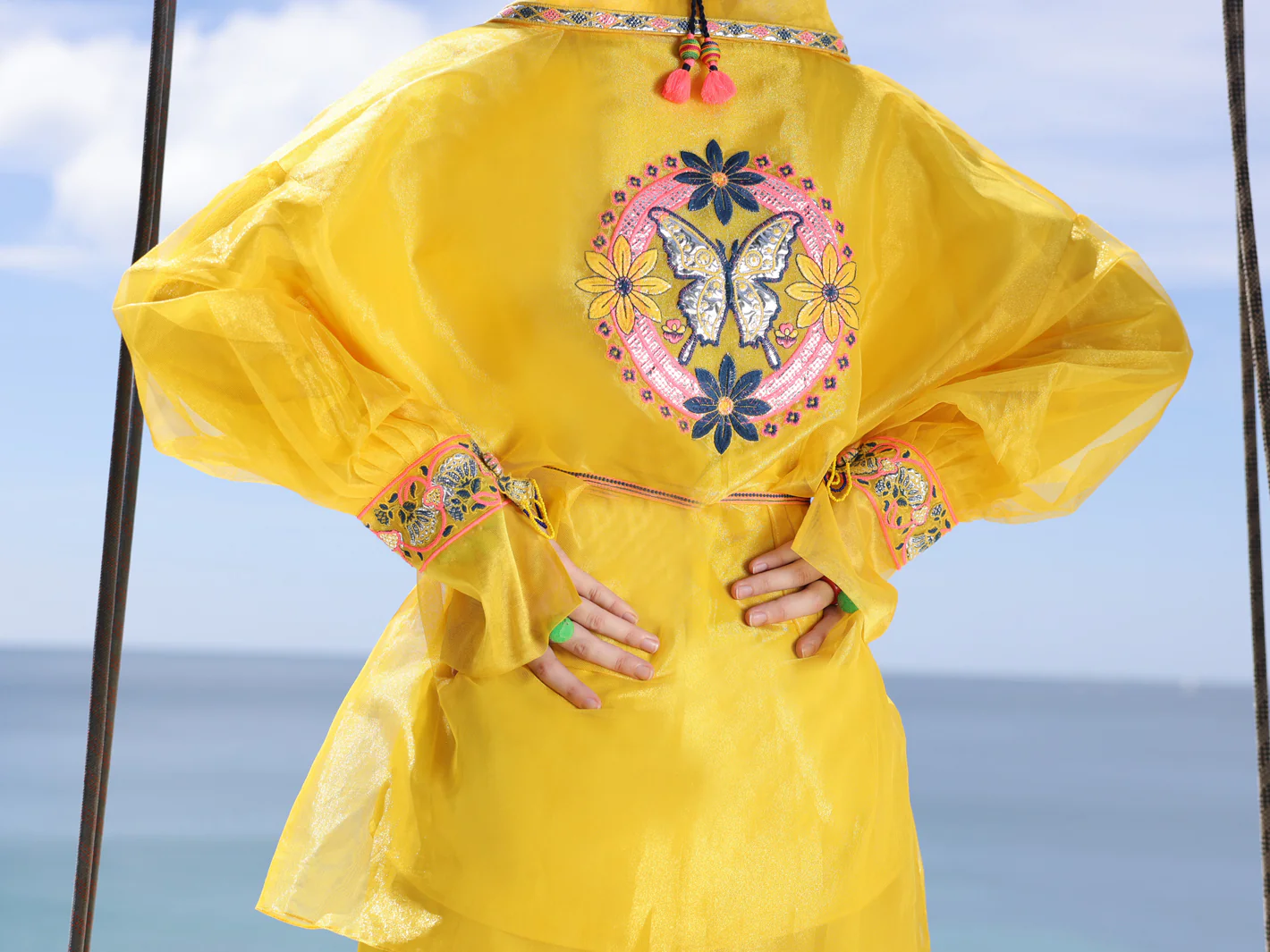 Yellow Shimmer Net Tunic - AL-LK-962
