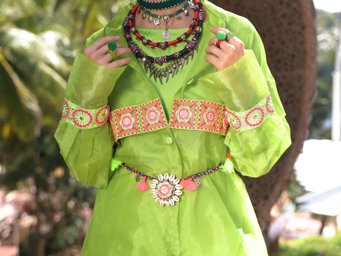 Parrot Green Shimmer Poly-Net Tunic - AL-LK-963