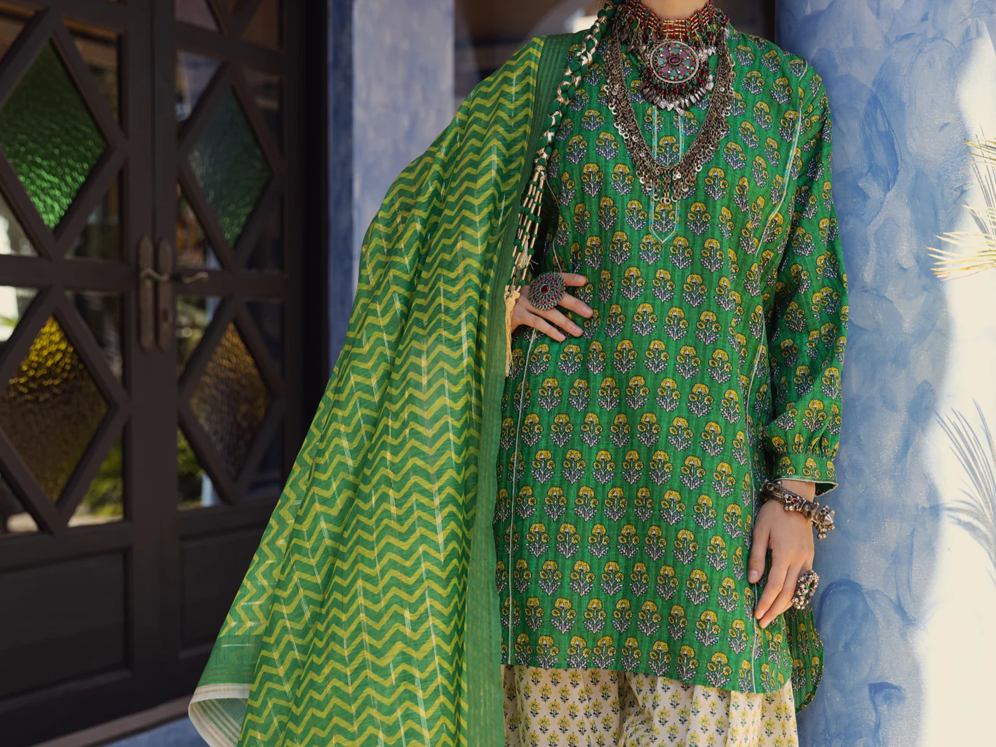 Green Dobby Jacquard 3Pc Unstitched - ALP-3PS-1502