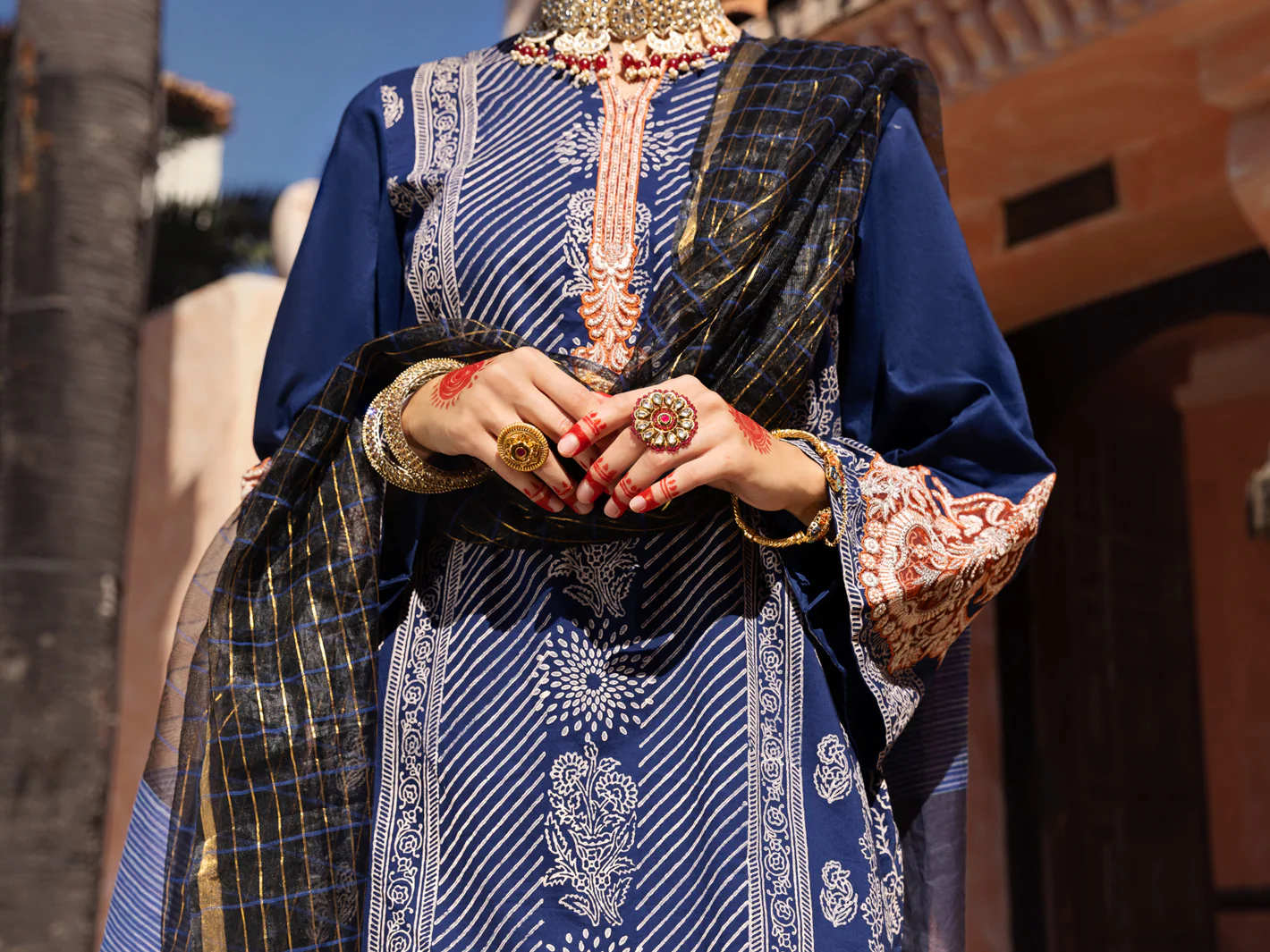 Blue Jacquard 3Pc Unstitched - ALP-3PS-1523