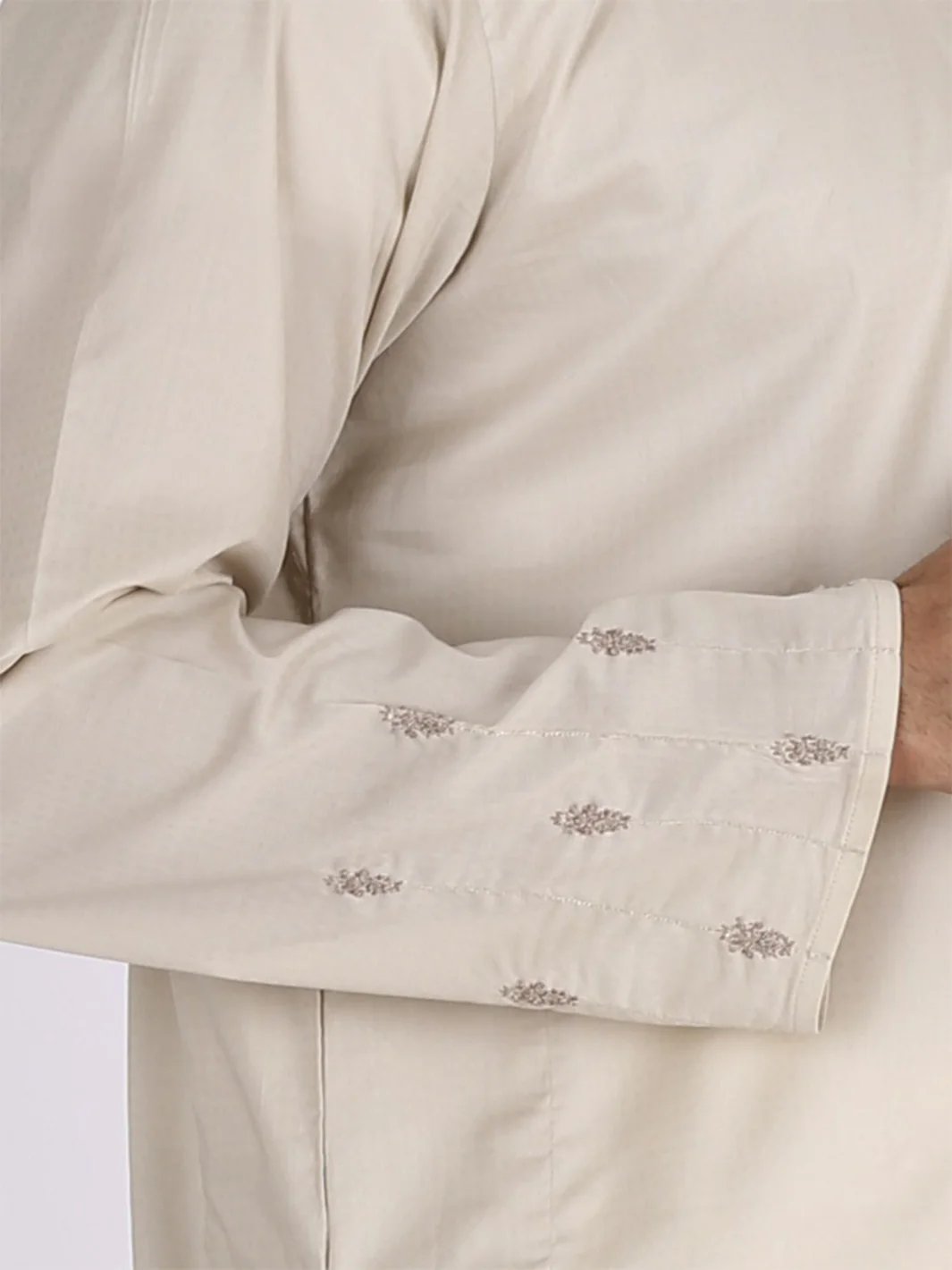 Beige Kurta Stitched In Blended Fabric With Buttons Detail On Front Placket.