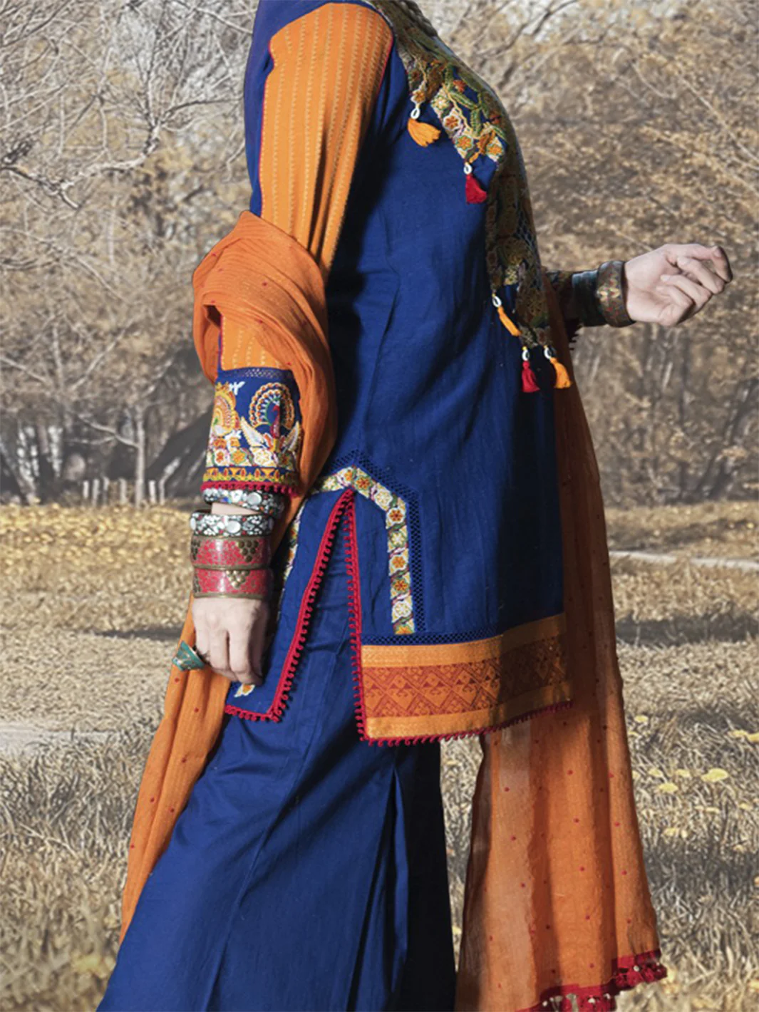 Royal Blue Khaddar 3Pc Stitched - AWP-178