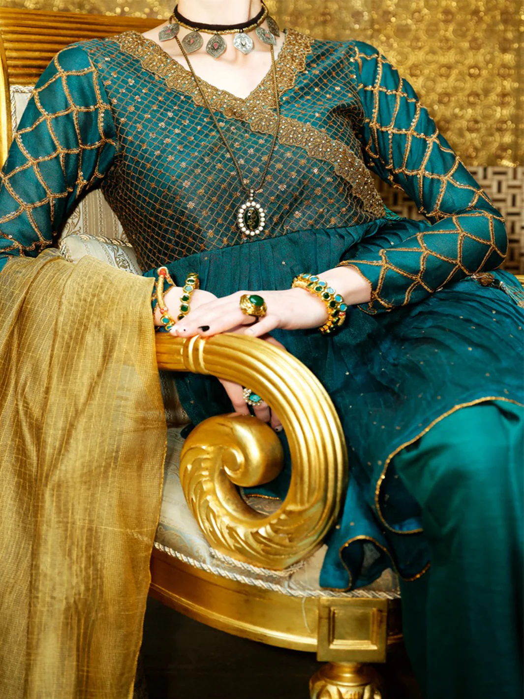 This Collection Is A Perfect Addition To Your Festive Wardrobe. It Is Perfectly Crafted From Khaadi Masori Net Fabric, Featuring A Blend Of Gold Lure & Buti Derived From Mughal Era, While The Classy Silhouette Depict The Same Mughal Sophistication. The Perfect Blend Offered In This Ethnic Collection Is What Will Set You Apart This Season.